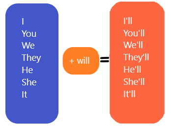 С местоимениями для удобства используется сокращенная форма will, в таком случае к местоимению через апостроф добавляется ‘ll: