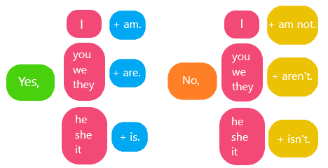 Сначала ставим Yes или No, затем подлежащее, выраженное местоимением, а затем глагол to be,